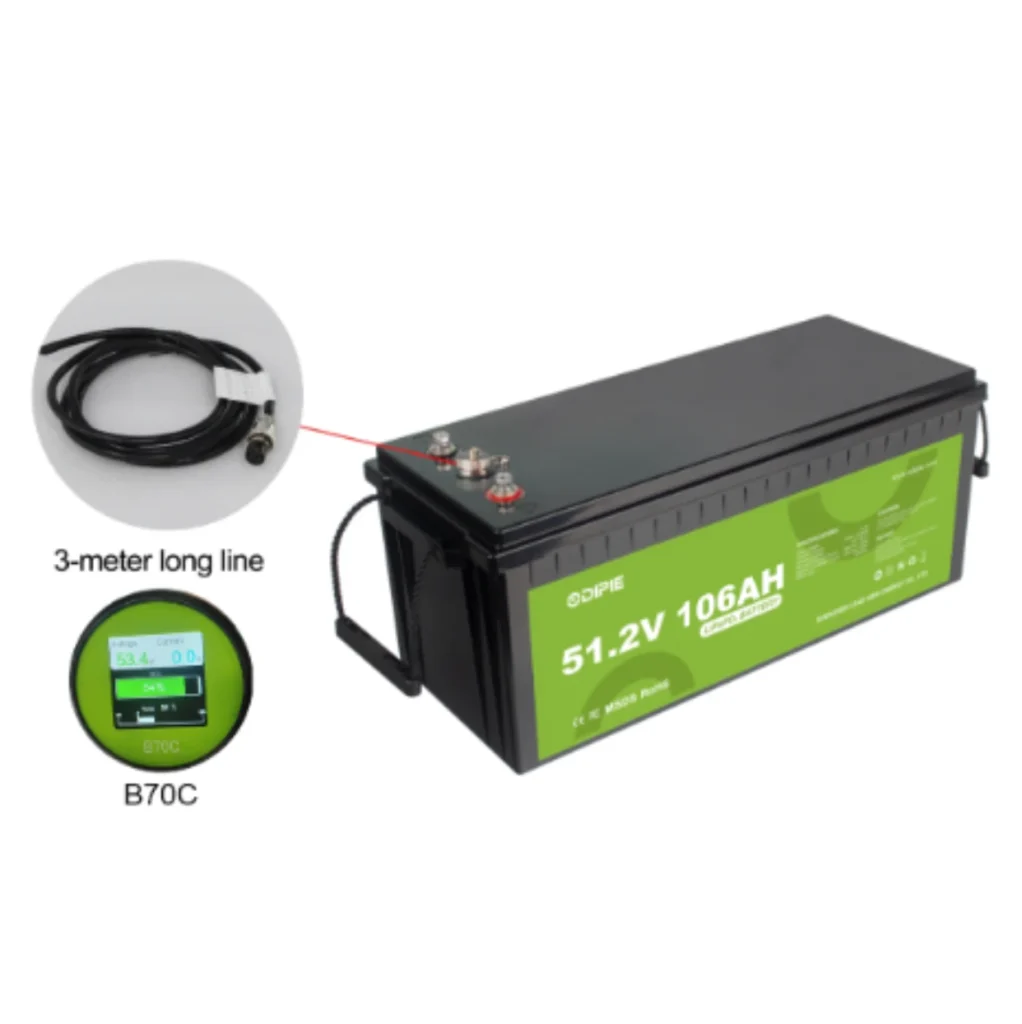 Set completo di batteria, caricatore del tipo ‘On Board’, Display a LCD con 3 metri di cavo e possibilità di monitorare le performance di ogni singola cella tramite App via Bluetooth.